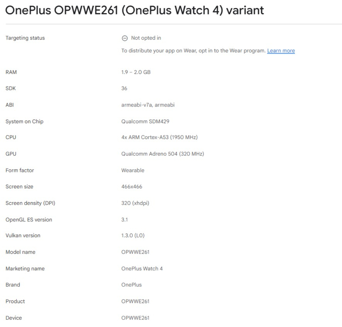 Infelizmente, sugestões anteriores de que a OnePlus teria transferido o hardware do antigo Watch 3 eram precisas (atualmente, US$ 249,99 na Amazon). Por exemplo, o Google Play Console descreve que o Watch 4 combina 2 GB de RAM com o Snapdragon W5 Gen 1 da Qualcomm, em vez do mais recente Snapdragon Wear Elite.