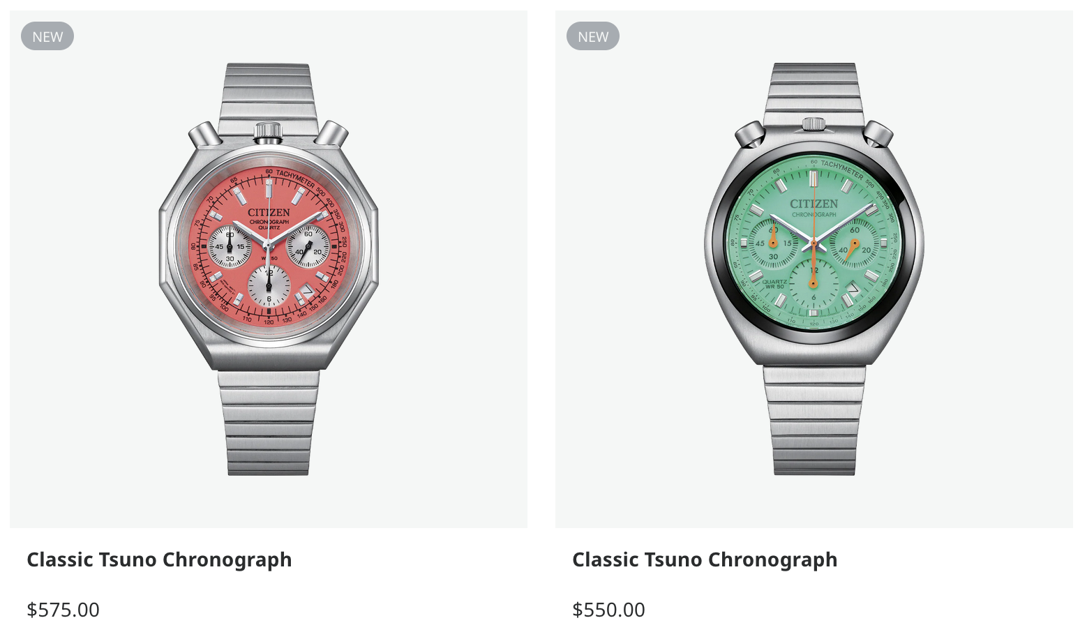 Citizen Australia acaba de lançar dois novos modelos Classic Tsuno Chronograph, em uma tentativa de ressuscitar o design "Bullhead" de 1973 da marca https://www.dialicious.com/en/citizen/chronograph_bullhead em formato de quartzo atualizado. As novas referências, AN3700-89Z e AN3660-73Xmantêm a assinatura dos botões montados na parte superior e o visual da pulseira, que é a assinatura da silhueta original do Tsuno.