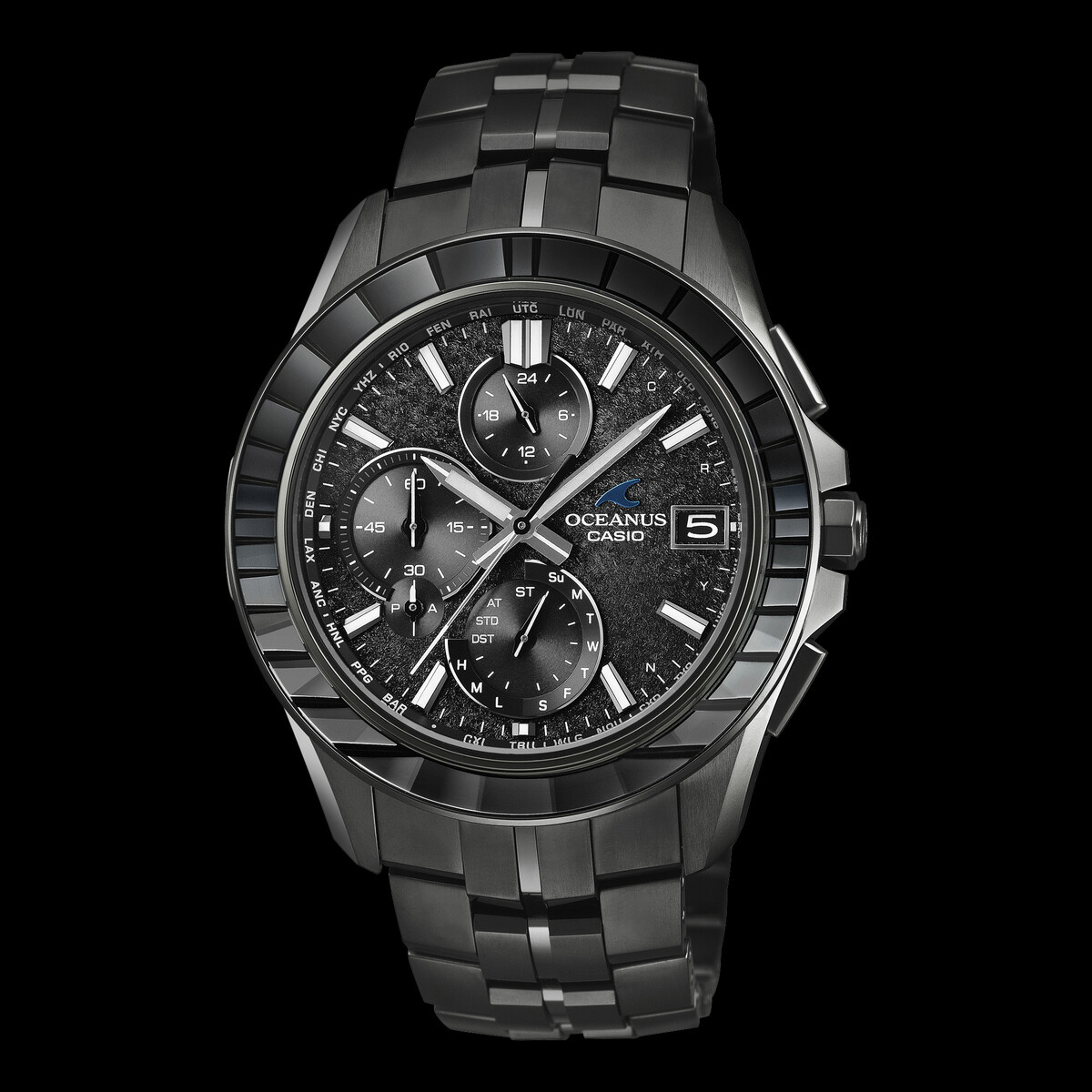 A Casio também usou seu sistema Gallium Tough Solar, que supostamente aumenta a eficiência em cinco vezes em comparação com o Tough Solar convencional, usando conexões à base de gálio em vez de silício - tecnologia também encontrada em aplicações aeroespaciais avançadas. A luz do dia entra no mostrador através de um anel indicador de data para carregar o relógio. O titânio com revestimento DLC é usado em todas as partes, incluindo um fundo de caixa gravado com um relevo da superfície da lua no OCW-SG1000CN.