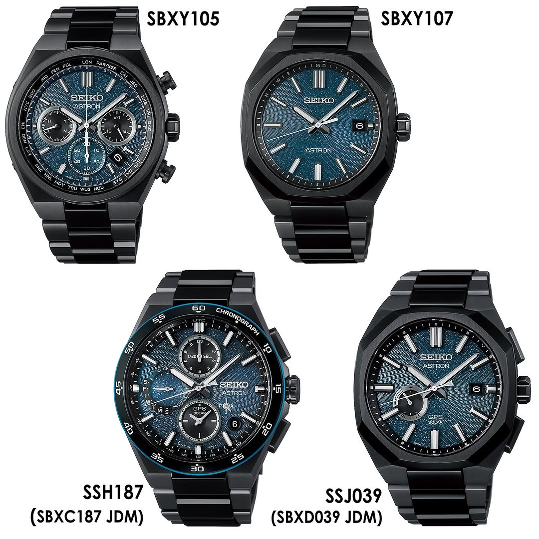 Quatro novos Seiko Astron Starry Sky de edição limitada foram revelados, divididos entre dois modelos GPS Solar e dois modelos Solar controlados por rádio. Todos os quatro usam caixas e pulseiras de titânio revestidas de preto e apresentam um mostrador azul com acabamento em textura espiral estampada (inspirada em uma galáxia rodopiante), como visto nas imagens compartilhadas pela fonte confiável @plus9time no Instagram.
