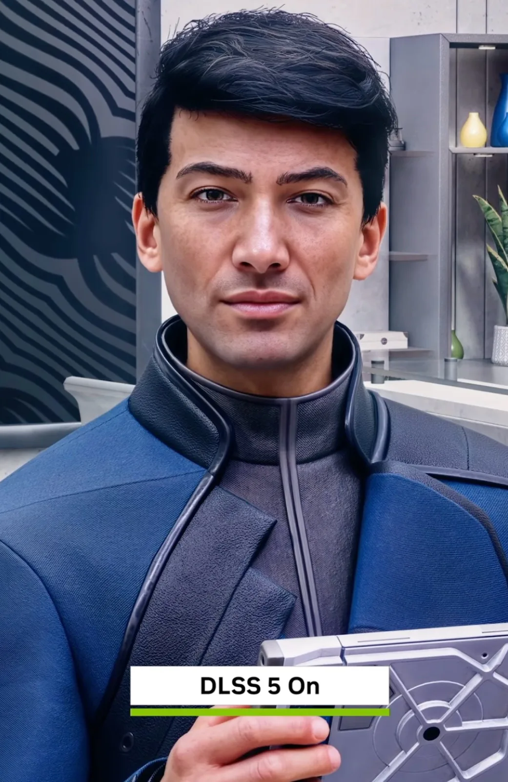 No lançamento, a tecnologia também será executada em sistemas com uma placa de vídeo, mas essa configuração de demonstração sugere que o DLSS 5 será reservado para placas de vídeo de alta qualidade. O DLSS 5 não se destina a alterar a geometria ou as texturas dos jogos, mas os jogos devem parecer significativamente mais realistas quando o DLSS 5 for ativado, graças à iluminação gerada por IA. No entanto, como mostra a imagem de comparação incorporada abaixo, o DLSS 5 pode alterar a aparência a tal ponto que os personagens dos jogos são quase irreconhecíveis