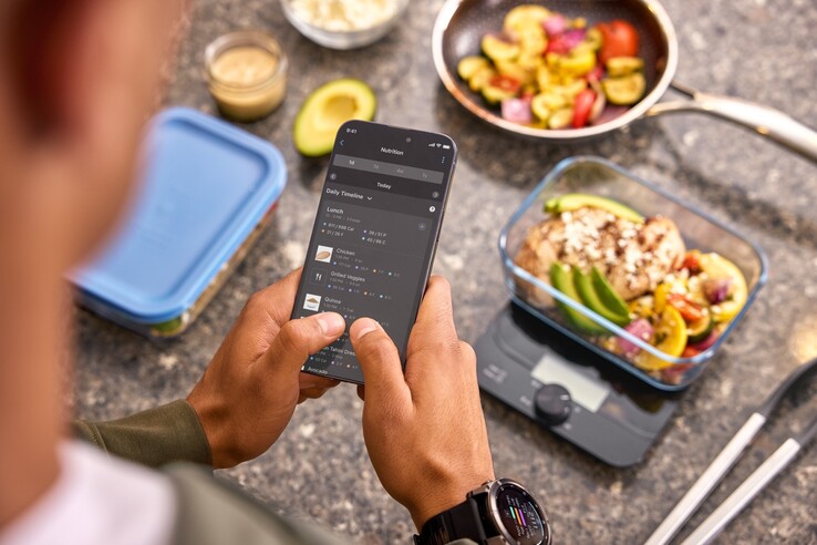 O recurso de rastreamento nutricional da Garmin foi projetado para facilitar o acompanhamento de sua dieta. Quando o senhor consome um alimento, basta digitalizá-lo usando o aplicativo para smartphone Garmin Connect, seja escaneando o código de barras ou segurando o próprio prato na frente da câmera, que o reconhecerá usando IA.