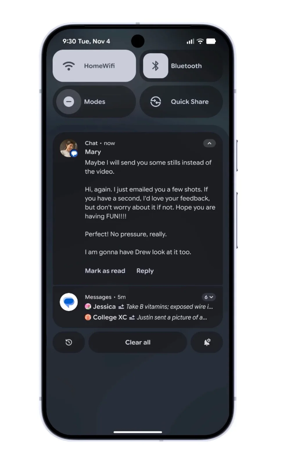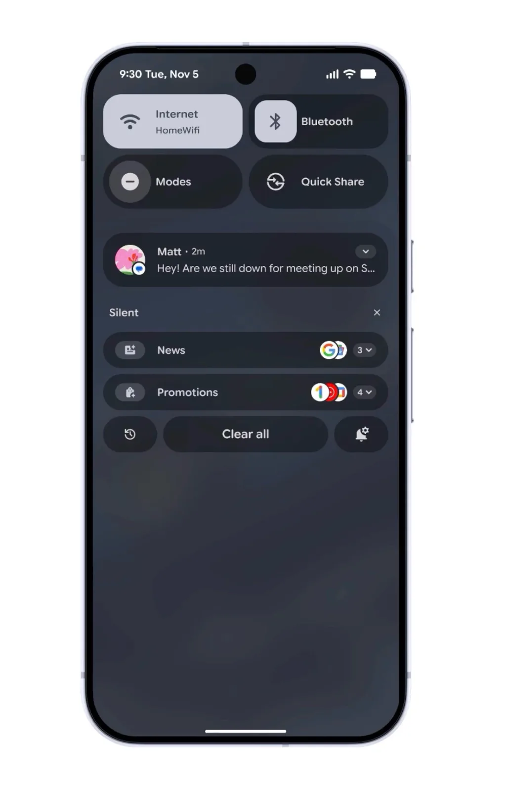 Quando um tema é usado, a atualização também aplica cores aos ícones de aplicativos que não são compatíveis com temas, pois os respectivos ícones são gerados por meio de IA. As notificações recebidas podem ser resumidas automaticamente pela IA após a atualização, enquanto as mensagens de baixa prioridade, como anúncios, são agrupadas e exibidas em um formato menor.