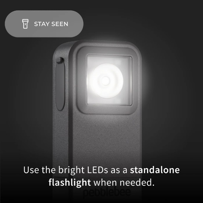 O Pebblebee Halo pode ajudar a deter ameaças ou pedir ajuda, pois tem uma sirene e luzes estroboscópicas integradas. A sirene de 130 dB e as luzes estroboscópicas são ativadas ao separar a parte inferior do dispositivo. Uma vez ativado, o aplicativo complementar compartilha sua localização ao vivo com seus contatos de confiança (até 5) via SMS. Ele também tem um modo de alerta silencioso que permite que o usuário notifique um ou mais contatos confiáveis sem ativar a sirene e as luzes estroboscópicas.