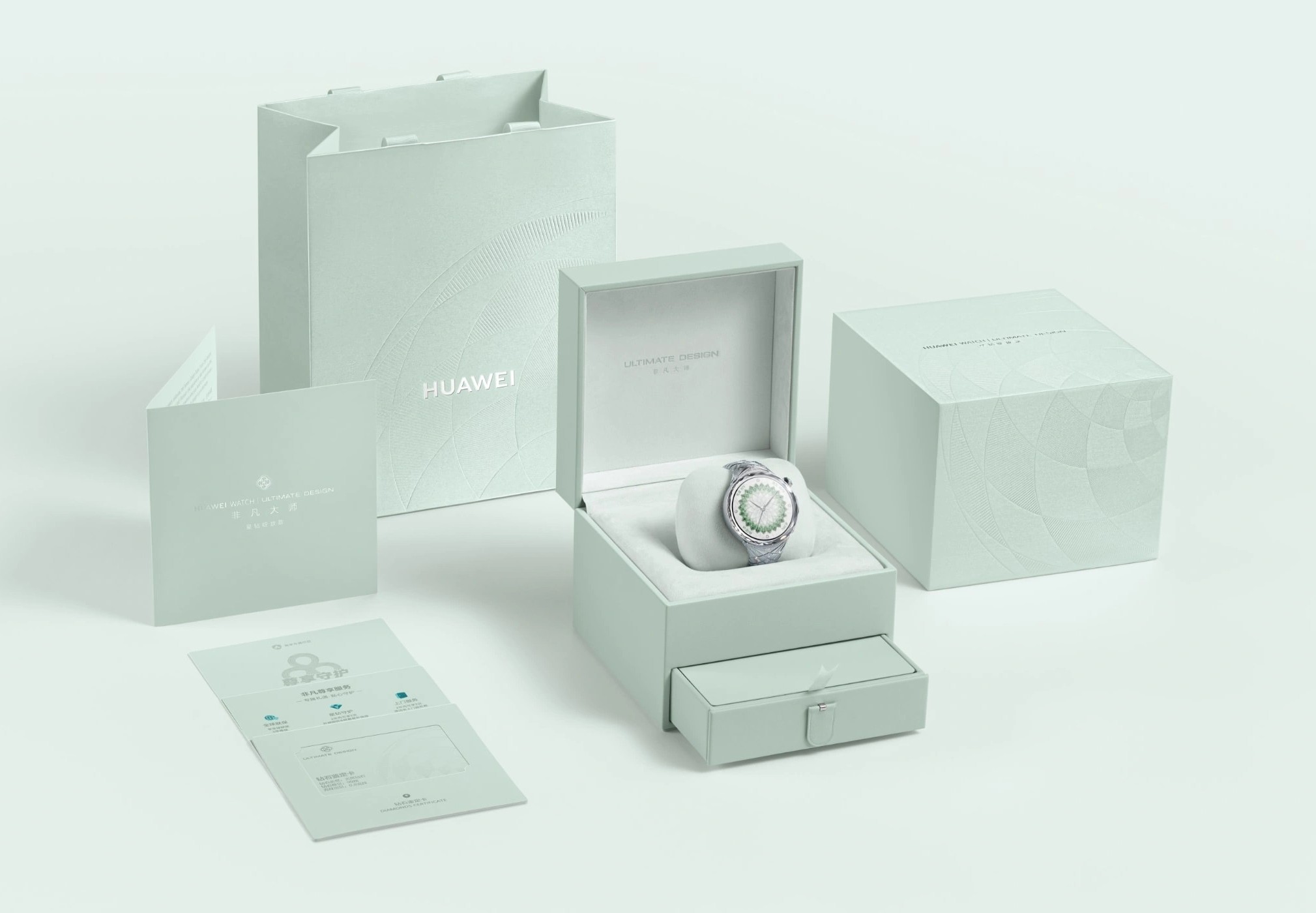 O Huawei Watch Ultimate Design está agora disponível em uma nova variante. O novo smartwatch é chamado de Huawei Watch Ultimate Design Extraordinary Master Diamond Edition, também conhecido como Huawei Watch Ultimate Design Diamond Edition, e a Huawei afirma explicitamente que ele é voltado para mulheres, ao contrário do Royal Gold Edition e Sapphire Gold Edition que têm um design masculino.