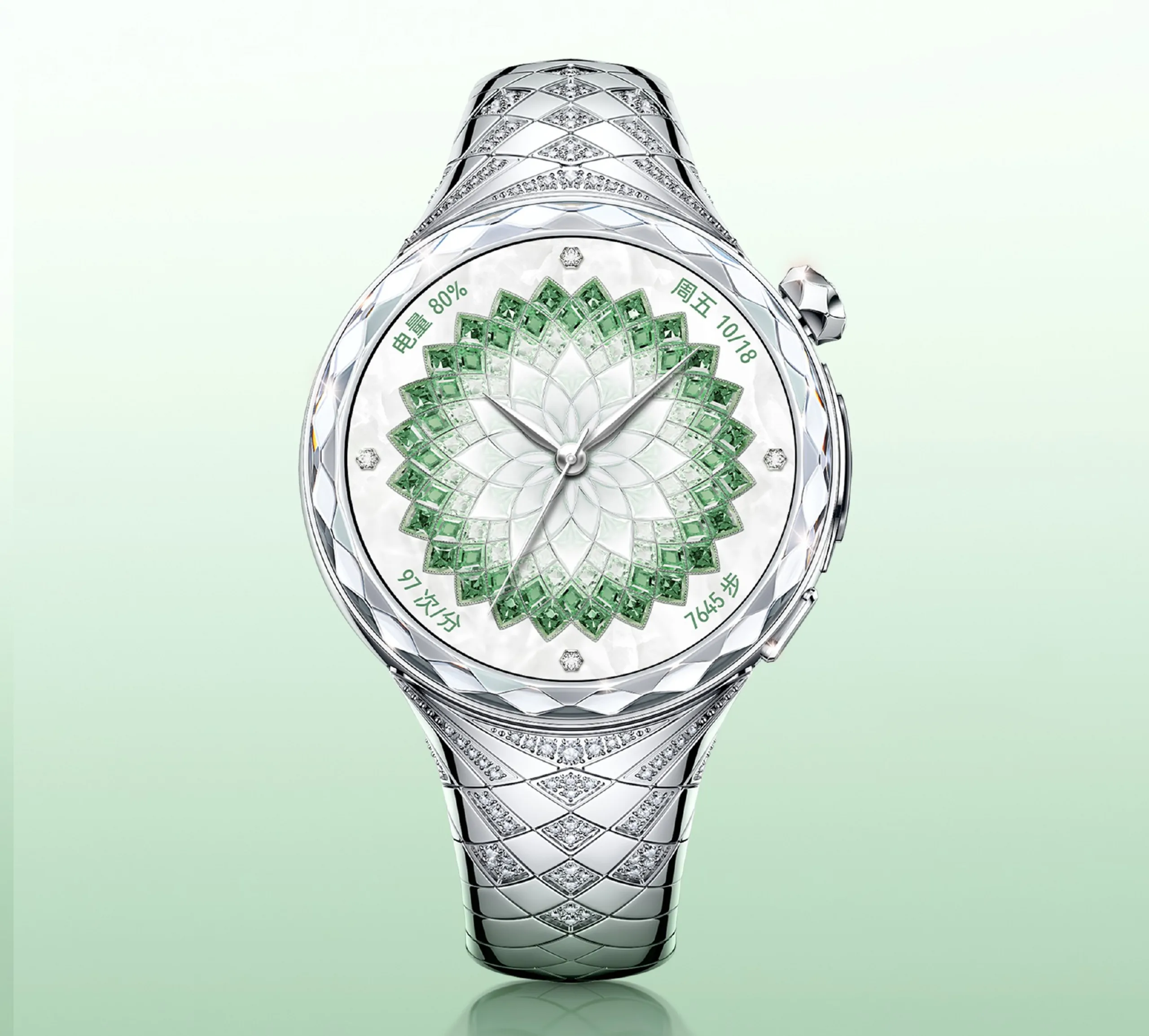 De acordo com um pôster teaser compartilhado no Weibo, o Huawei Watch Ultimate Design Extraordinary Master Diamond Edition é coberto de diamantes. Há um diamante nas marcas das 12, 3, 6 e 9 horas, e um monte de diamantes na pulseira também. Até mesmo a caixa tem um design com corte de diamante.