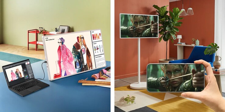 Como alternativa, um minicontrole remoto e um controle de voz também estão disponíveis. A LG StandbyMe 2 Max difere das TVs comuns principalmente devido à sua portabilidade. A LG inclui um suporte que pode ser ajustado em altura de 1,10 a 1,30 metros. As rodas facilitam o transporte de um cômodo para outro. A LG oferece um suporte de parede opcional de um ponto que pode ser fixado com apenas um parafuso