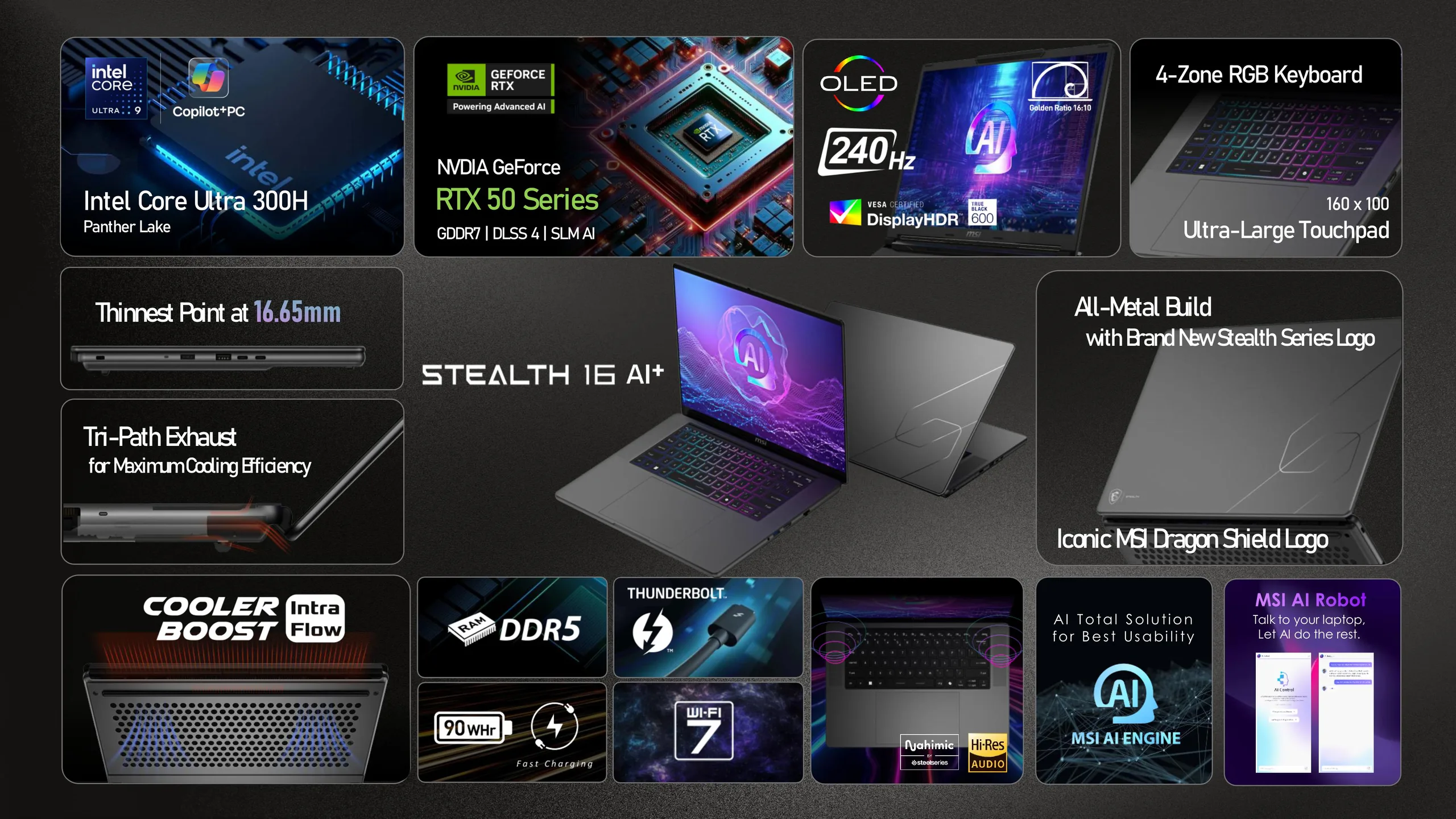 Na CES 2026, a MSI está abandonando o Stealth 18 em favor de um novo Stealth 16 AI+ equipado com os mais recentes processadores Intel Panther Lake-H Series 300 e GPUs da série RTX 50.