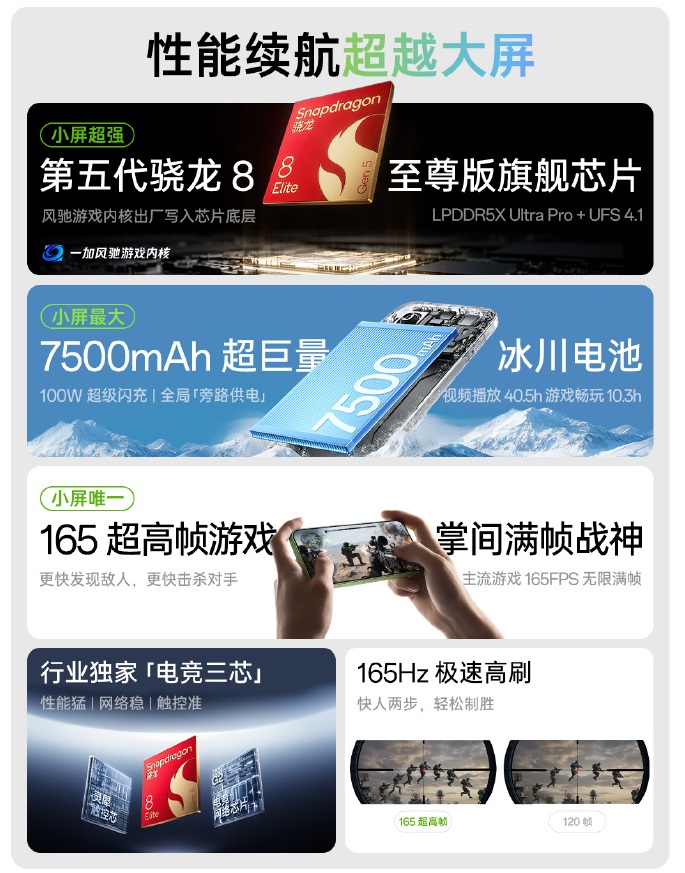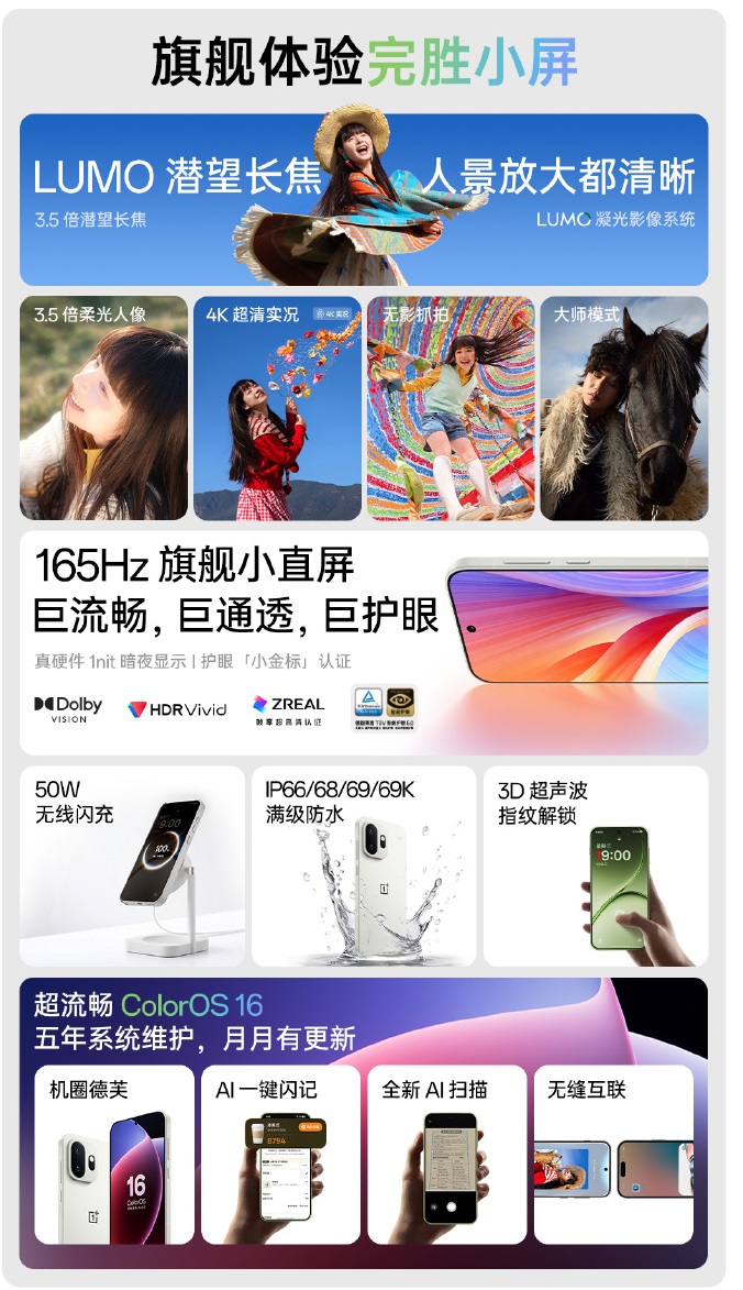 O OnePlus 15T é um dispositivo de 6,32 polegadas como o 13T anterior, com a tela em questão sendo uma OLED de 165 Hz feita pela Tianma. Sob o capô do OnePlus 15T está o Snapdragon 8 Elite Gen 5como no maior e mais caro OnePlus 15. O chipset Qualcomm é acompanhado por até 16 GB de memória LPDDR5X Ultra Pro e 1 TB de armazenamento UFS 4.1, juntamente com o chip de energia SUPERVOOC S e o chip de rede G2 E-sports Chip de rede G2 E-sports.
