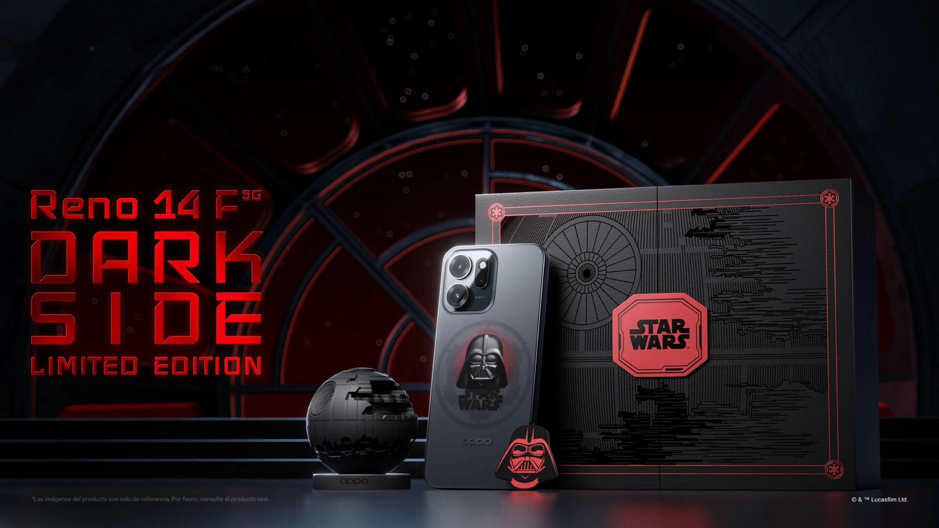 Além disso, a interface do usuário agora tem um tema de Star Wars com papéis de parede e animações com o design de Star Wars. A Star Wars Limited Edition vem em uma grande caixa de colecionador com acessórios como um carregador USB-C de 45 W e um cabo de carregamento correspondente, uma ferramenta SIM e um chaveiro com o design de Darth Vader, bem como um suporte de telefone com o estilo da Estrela da Morte II. O hardware interno é idêntico ao do Oppo Reno14 F normal.