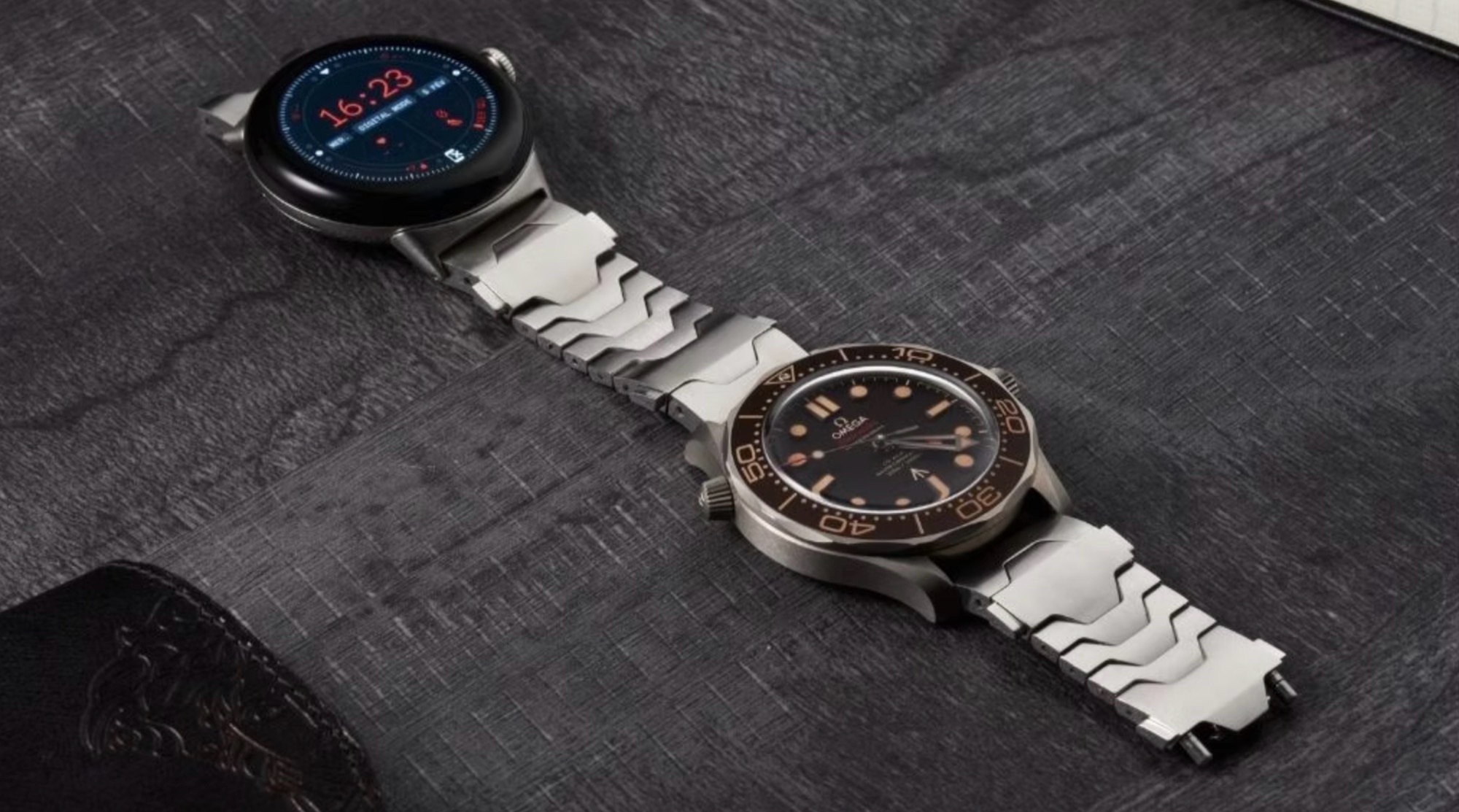 A Smartlet One é uma das pulseiras de smartwatch mais incomuns do mercado, pois comporta dois relógios ao mesmo tempo: um na parte superior e outro na parte inferior do pulso. Isso permite que o usuário use um relógio analógico e um smartwatch ao mesmo tempo, por exemplo, um Apple Watch ou um Whoop MG como um rastreador de condicionamento físico sem sacrificar o estilo de um relógio analógico.