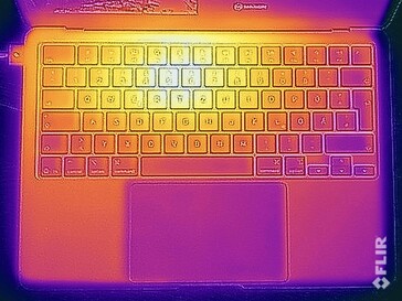 (±) A temperatura máxima no lado superior é 44.9 °C / 113 F, em comparação com a média de 35.9 °C / 97 F , variando de 21.4 a 59 °C para a classe Subnotebook.