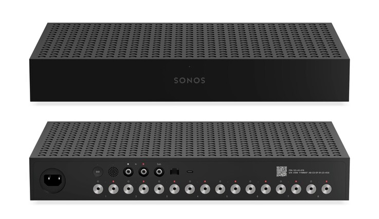 Como o amplificador apresenta um formato 2U, ele cabe facilmente em um rack de servidor e pode alimentar até oito pares de alto-falantes ao mesmo tempo com uma saída de até 125 watts por canal a 8 ohms. Se forem conectados alto-falantes Sonos de teto ou de parede instalados permanentemente, o amplificador pode até mesmo fornecer energia e música para até 24 unidades, ou seja, três alto-falantes por canal. A Sonos optou por amplificadores eficientes de Classe D e uma fonte de alimentação GaN integrada para manter esse dispositivo compacto.