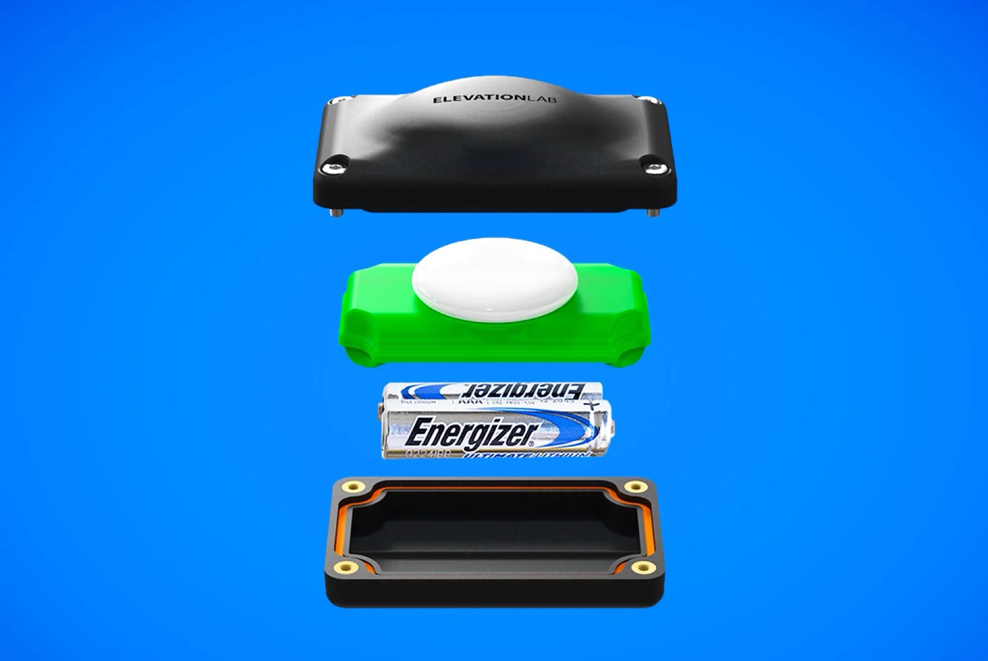 Isso reduz o tamanho do estojo pela metade, mas também diminui a vida útil da bateria para cinco anos, o que ainda é cinco vezes maior do que a bateria padrão de célula tipo moeda de lítio CR2032 que normalmente alimenta o AirTag Apple. Para uma vida útil ideal da bateria, a Elevation Lab recomenda as baterias Energizer Ultimate Lithium; as baterias alcalinas devem ser evitadas, pois sua taxa de autodescarga mais alta e a voltagem ligeiramente mais baixa significam que as baterias recarregáveis provavelmente resultarão em uma vida útil mais curta