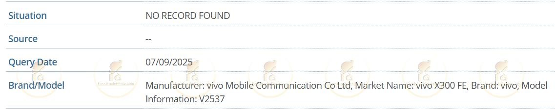 Um telefone com o número de modelo "V2537" foi visto pela primeira vez no banco de dados IMEI, revelando que esse número de modelo pertence ao Vivo X300 FE. O smartphone com o mesmo número de modelo também obteve recentemente a certificação da Comissão Econômica da Eurásia (EEC), o que sugere um lançamento nos mercados europeus. No entanto, a certificação não revela nenhuma das principais especificações ou uma data de lançamento concreta, mas é um forte indício de que o lançamento global do X300 FE está próximo.
