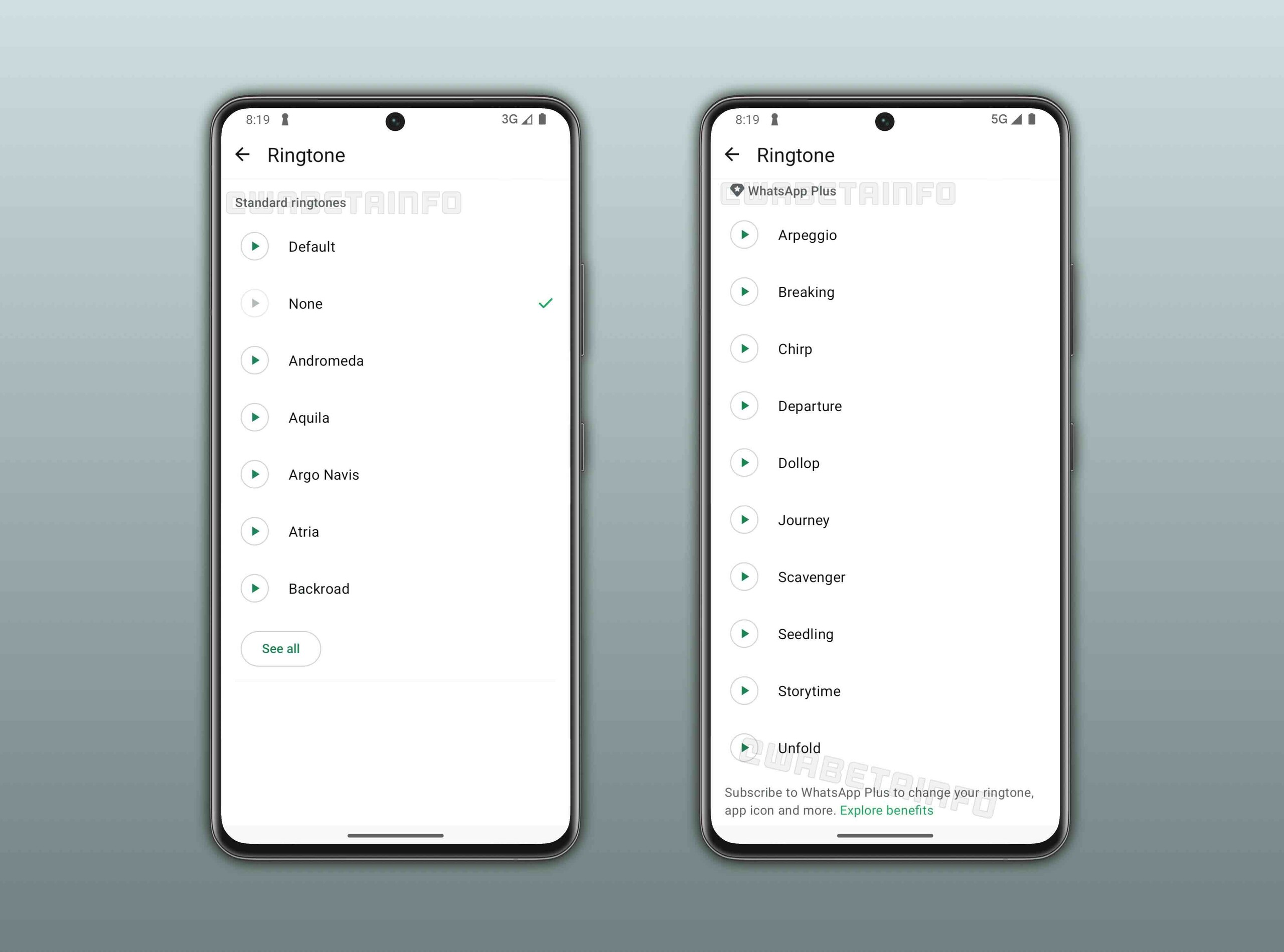 Além disso, o nível pago também permitirá que os clientes acessem um conjunto de novos toques exclusivos, permitindo que os usuários diferenciem as chamadas do WhatsApp de outros aplicativos de comunicação. Os assinantes também poderão fixar até 20 bate-papos, em vez do limite de 3 bate-papos para usuários padrão.
