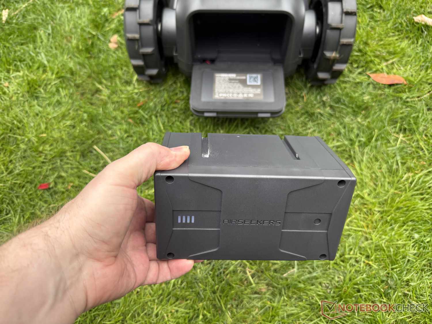 O fabricante promete um tempo de funcionamento de três horas com a enorme bateria de 15 Ah. Na prática, o Airseekers Tron superou esse tempo, cortando cerca de 350 metros quadrados com navegação RTK e configurações padrão. Teoricamente, teria sido possível obter uma área ainda maior se ele não tivesse mudado de posição com frequência sem cortar a grama e com pouco sistema.