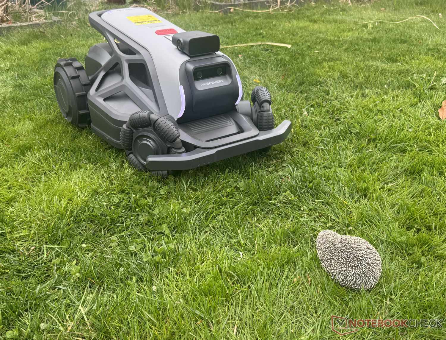 A função de detecção de obstáculos funcionou melhor ao cortar a grama. Nosso boneco de ouriço foi detectado de forma confiável aqui. Ele geralmente evitava um pedaço de mangueira de jardim, mas só raramente evitava uma bola de tênis amarela neon em um gramado verde. Sólido no geral, mas com espaço para melhorias.