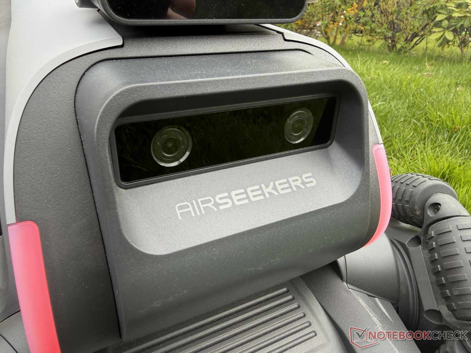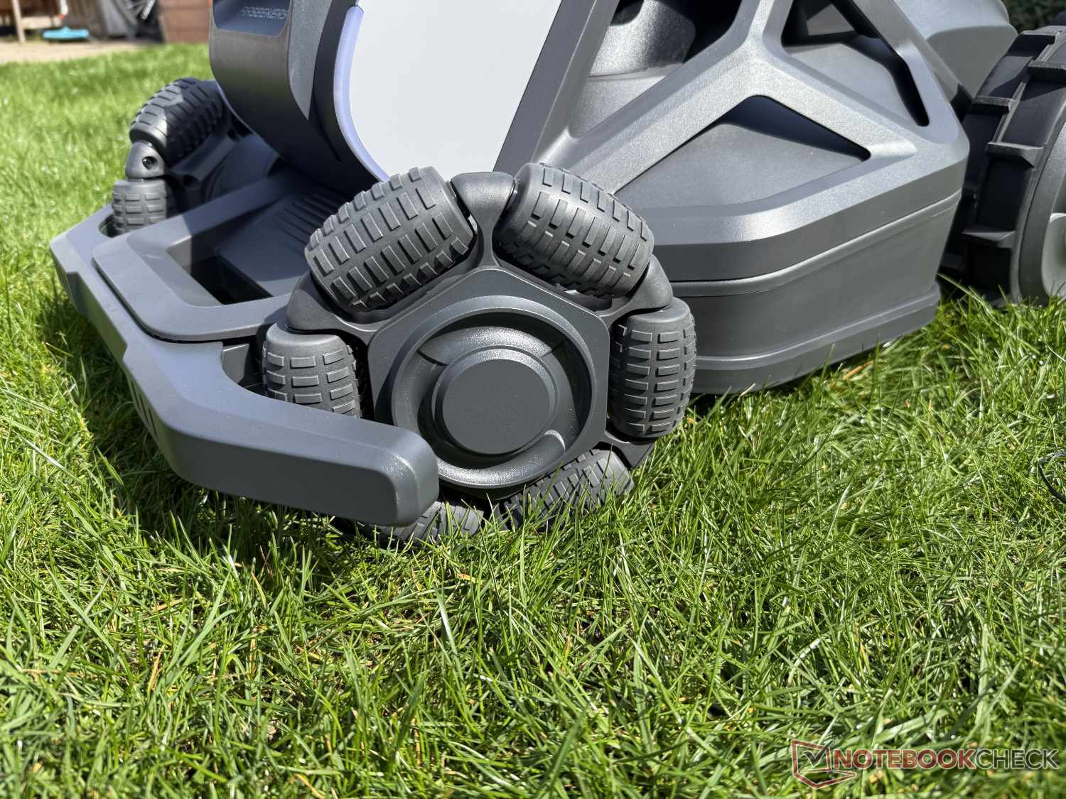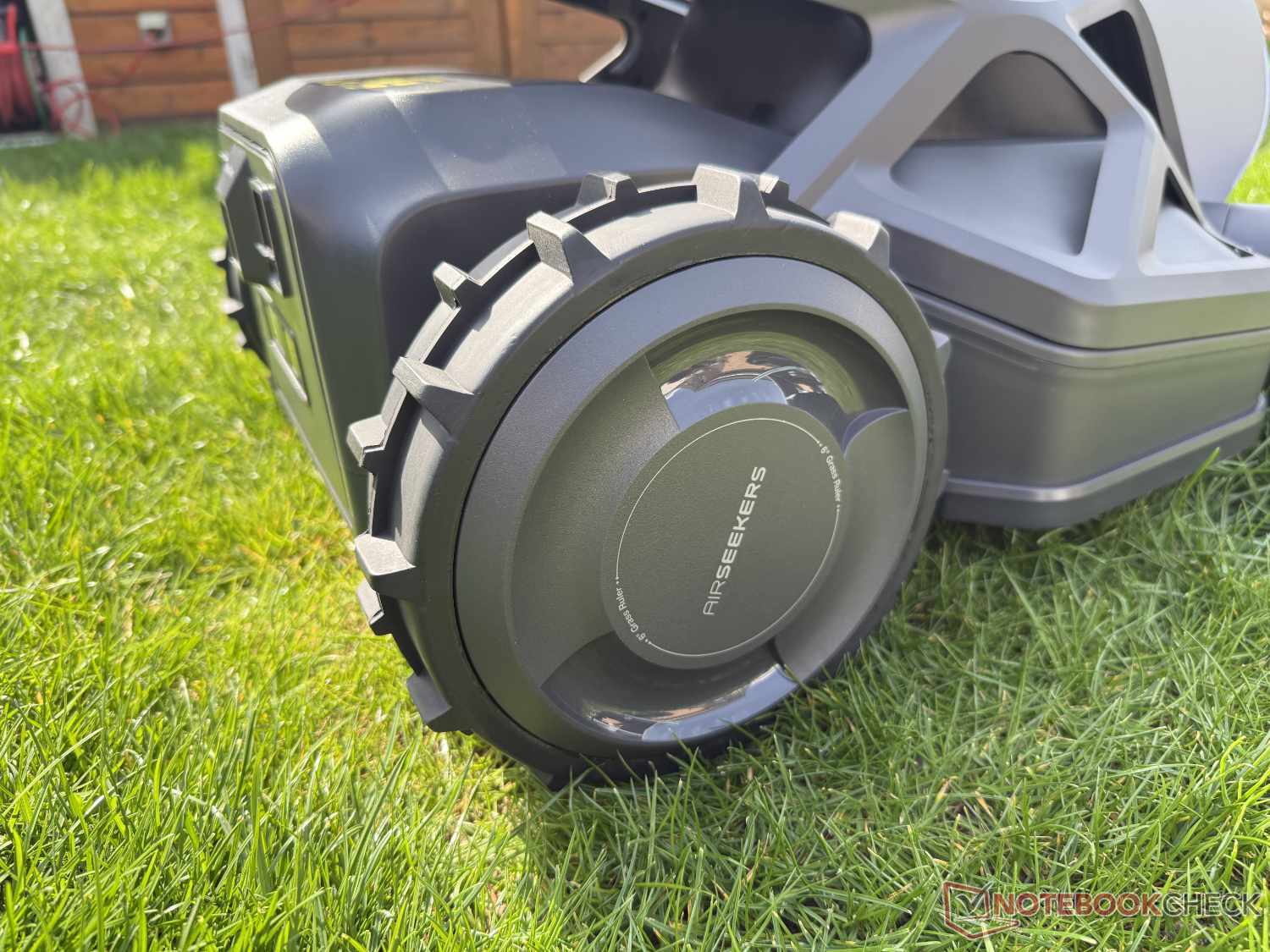 O Airseekers Tron tem potência real. Ele trabalha com 2.000 W. Mesmo a grama mais alta não é problema para ele. Isso resulta em um desempenho de corte confiável quando a respectiva área é atravessada (e as esteiras, às vezes não muito niveladas, atrapalham o trabalho). Ao dirigir, o Tron também se beneficia de seu alto desempenho. Ele domina inclinações e terrenos acidentados com inclinações de até 65%. Ele também superou uma seção estreita de menos de 1 m sem problemas.