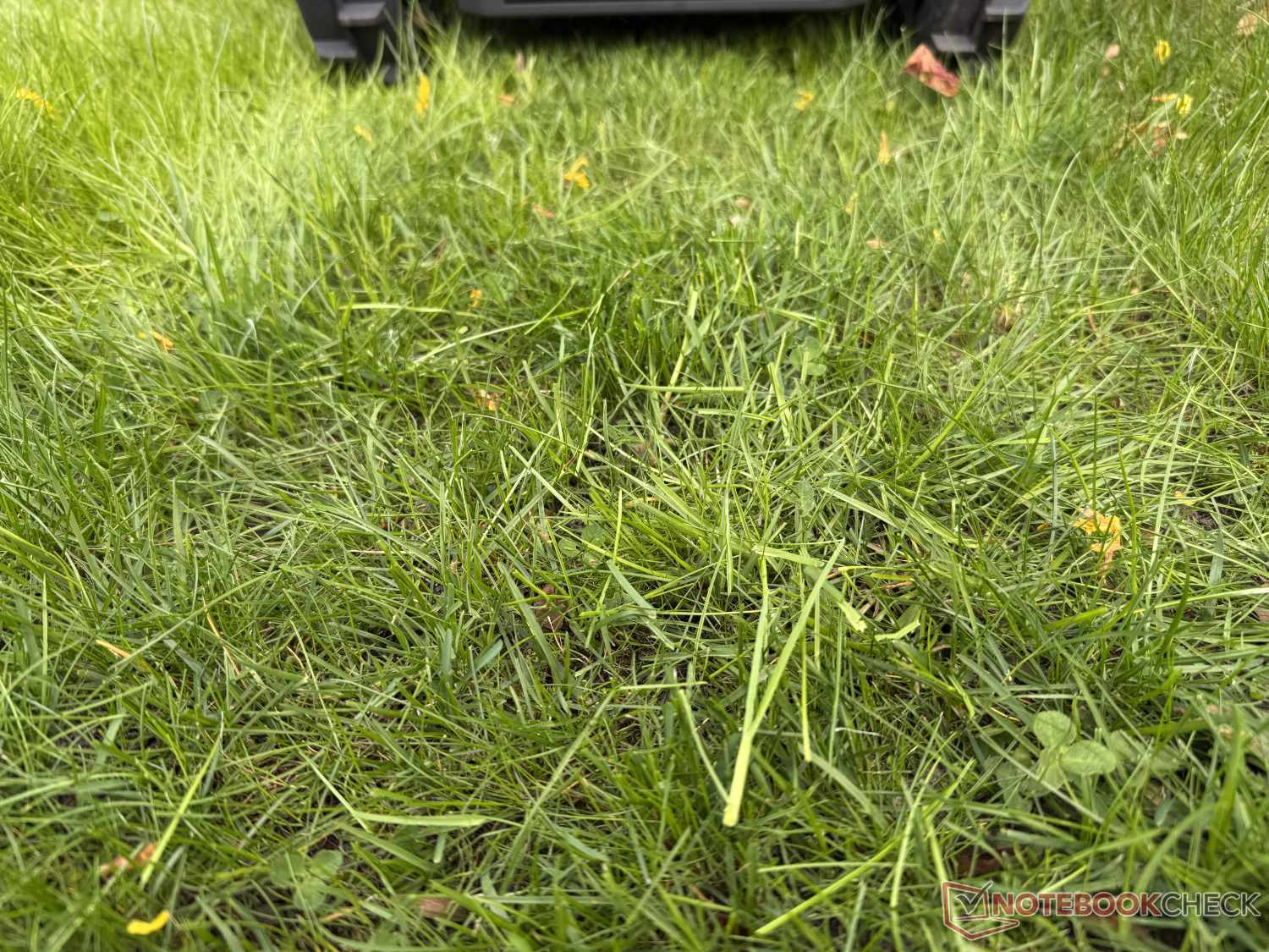 O forte desempenho do Tron é uma característica positiva. Isso o beneficia ao cortar grama alta e em terrenos acidentados, por exemplo, embora pudesse ser um pouco mais suave. A anunciada e aguardada função de cobertura morta com lâminas duplas não foi realmente convincente. Há também os problemas habituais com o corte de bordas.