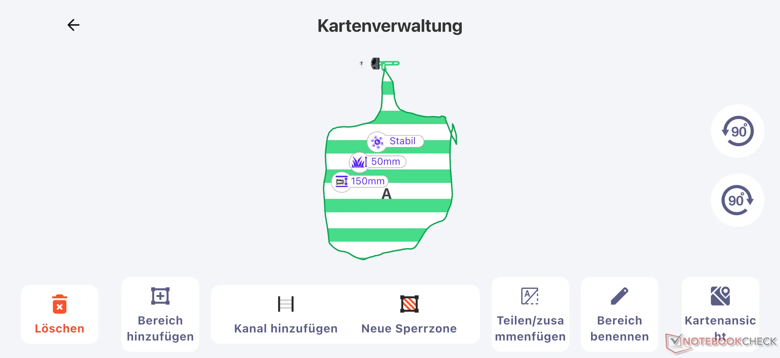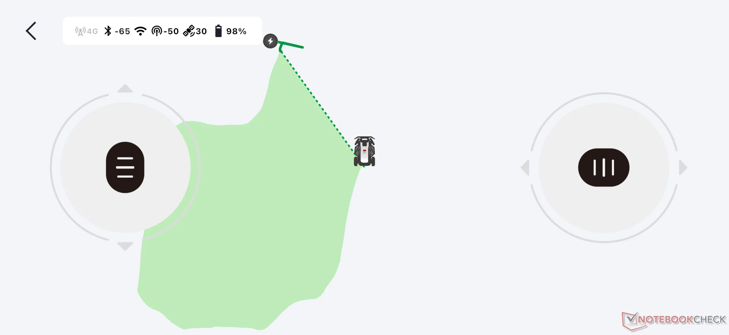Em seguida, há a rodada obrigatória de mapeamento. Isso envolve manobrar o robô cortador de grama uma vez ao longo da borda do gramado usando dois joysticks virtuais na tela. Infelizmente, o robô reage com muita sensibilidade às entradas na tela sensível ao toque do smartphone. Isso pode levar rapidamente a reações exageradas, como dirigir muito rápido ou fazer curvas muito acentuadas, o que prejudica a precisão do mapa.