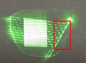 Três LEDs servem como fonte de luz. A característica mais marcante não é o projetor em si, mas a lente, que é equipada com uma série de espelhos parcialmente transparentes que refletem a luz do projetor exatamente onde ela deve estar. Essa lente permite que o Meta exiba uma imagem claramente visível para o usuário, mas que não pode ser vista de fora