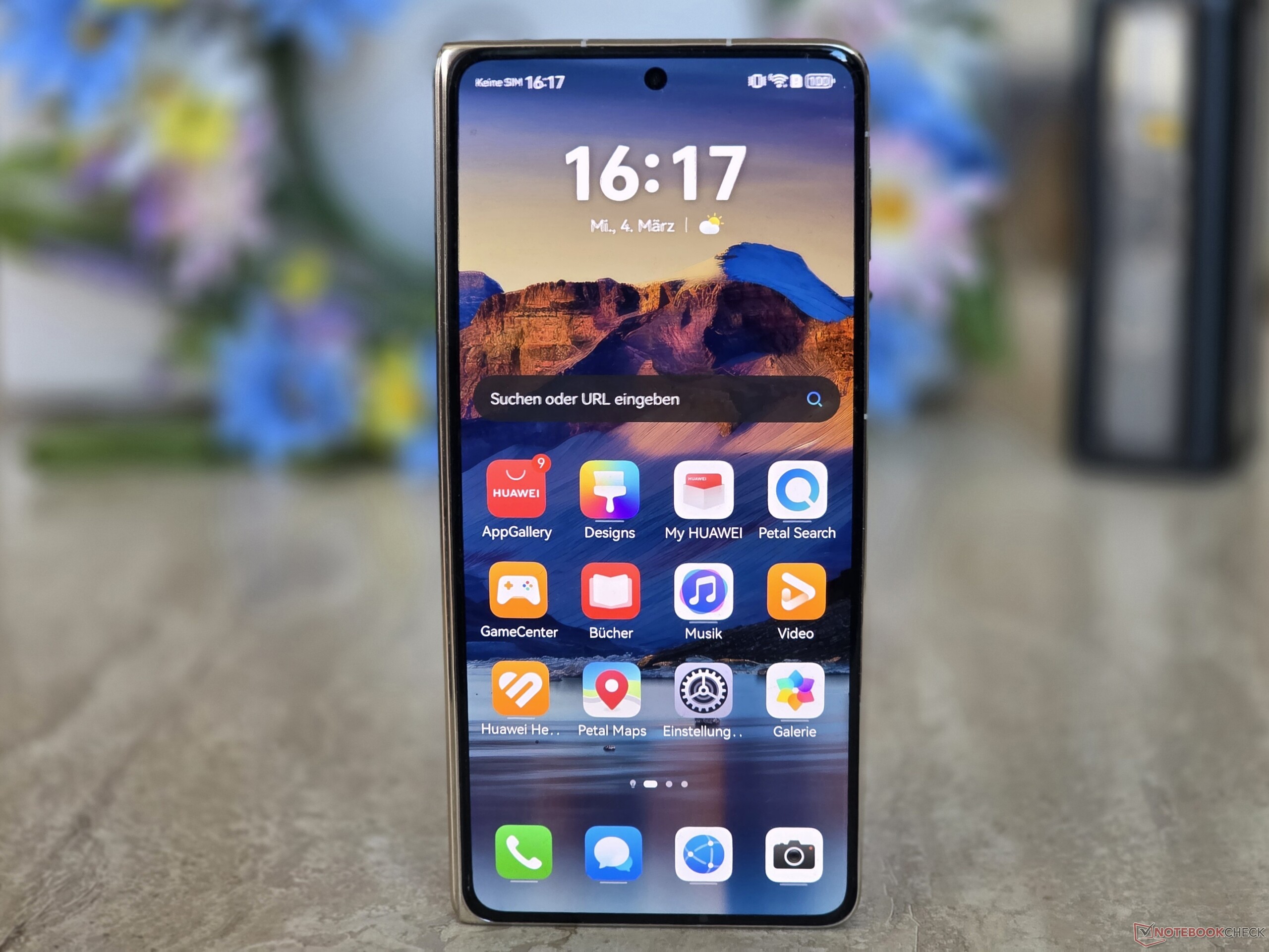 O chassi não apenas parece premium, mas também tem certificação IP59 e, portanto, é resistente à água. O vinco não é de forma alguma pronunciado, mas é claramente perceptível. Dada a onda de concorrentes sem vincos que se aproxima, a Huawei também não é mais a última palavra nesse aspecto em 2026.