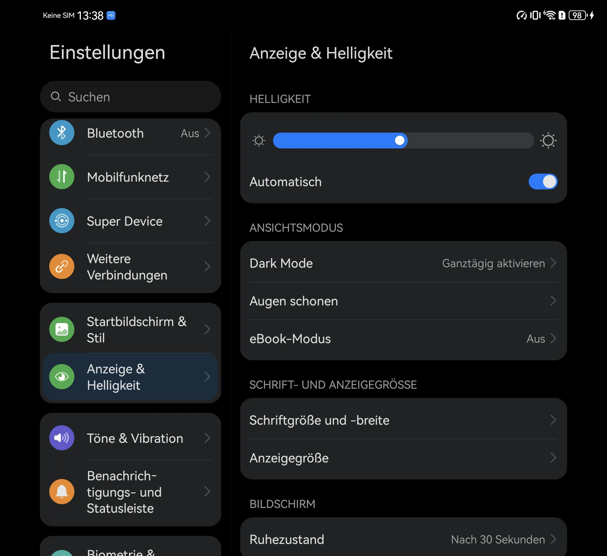A reprodução de cores também está no mesmo nível do painel dobrável e é muito precisa. A Huawei também não faz concessões quando se trata de escurecimento PWM e usa a mesma tecnologia aqui.