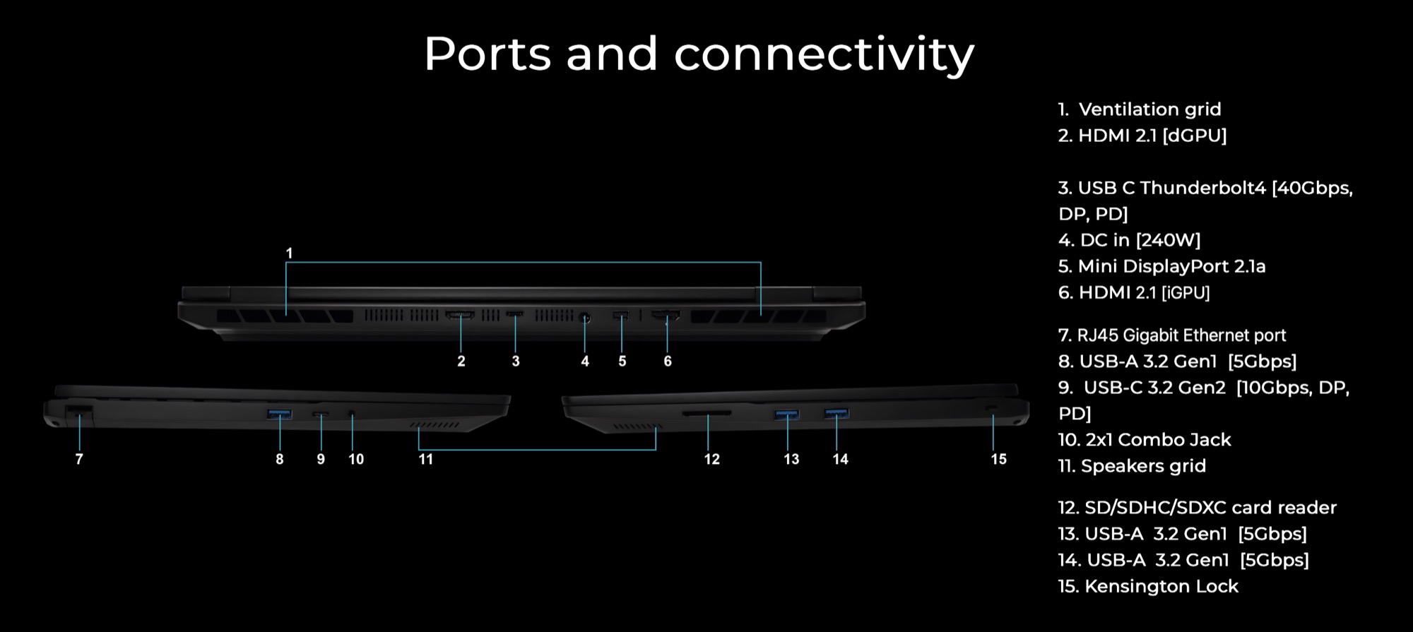 Em combinação com o teclado com iluminação RGB, o Slimbook Creative 15 pode ser usado como um laptop para jogos. O notebook pode ser encomendado com várias distribuições Linux, mas também está disponível com Windows 11 ou com ambos os sistemas operacionais em uma configuração de inicialização dupla por um custo adicional. O Slimbook Creative 15 tem uma bateria de 99 Wh, incluindo um carregador de 240 watts e uma ampla gama de conexões, incluindo duas portas HDMI 2.1, Thunderbolt 4 (40 Gbit/s), Mini DisplayPort 2.1a, três portas USB-A e Gigabit Ethernet.