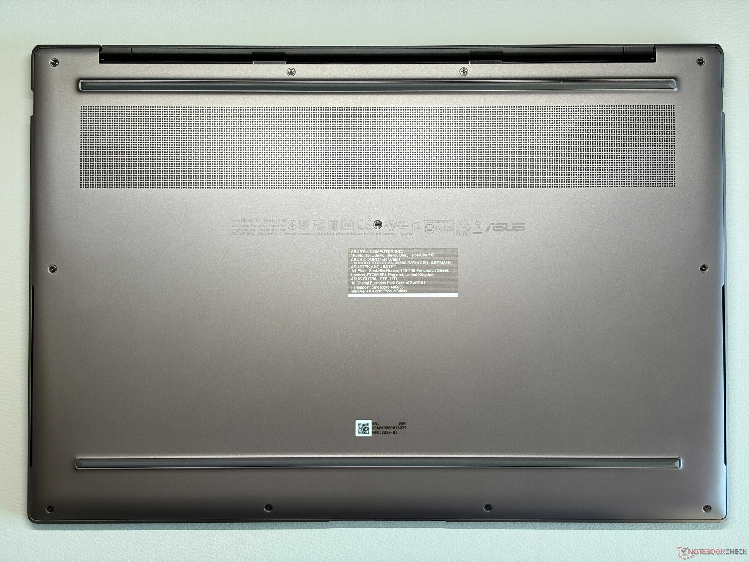 A caixa permaneceu quase inalterada em relação ao seu antecessor e continua a impressionar com seu design extremamente fino e de alta qualidade. Desta vez, nosso dispositivo de teste vem em cinza escuro, que parece muito elegante. As linhas na tampa da tela foram removidas, e o logotipo do Zenbook agora está centralizado. Além disso, o pequeno logotipo da ProArt foi movido da área acima do teclado para o canto superior direito do ClickPad. O leve rangido da tampa, que ainda era irritante no modelo do ano passado, não é mais um problema na versão atual. O restante do equipamento corresponde ao Predecessor e as opções de atualização ainda estão limitadas ao SSD.
