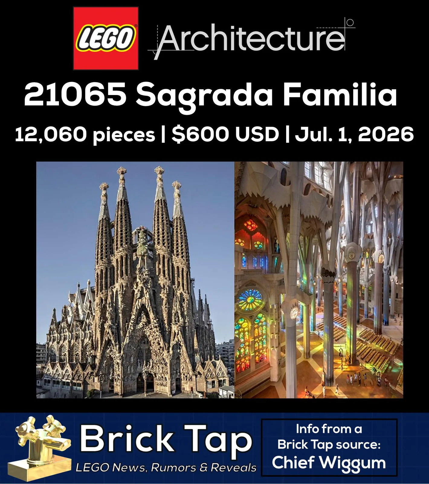 De fato, de acordo com as informações reveladas pelo chefe Wiggum e compartilhadas no Reddit e no Instagram, trata-se de um conjunto de arquitetura chamado 21065 Sagrada Família, que retrata a famosa basílica localizada em Barcelona, que é a igreja mais alta do mundo, com 172 metros de altura.