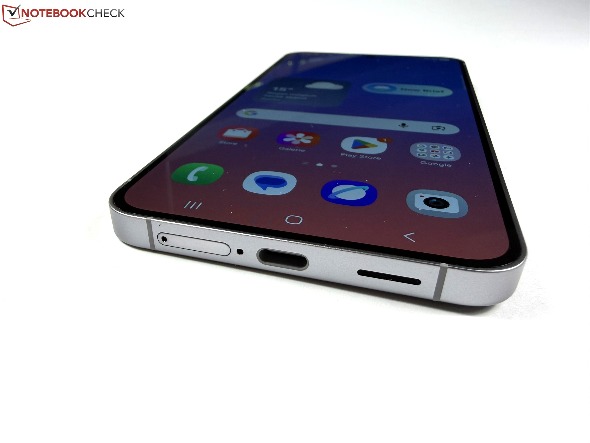 Uma vantagem para o modelo sucessor: o Galaxy S25 FE tem molduras de tela visivelmente mais finas do que o Galaxy S24 FE, o que lhe confere uma aparência mais premium. No entanto, a moldura da tela não é totalmente simétrica, pois o painel OLED ainda se projeta alguns milímetros a mais na parte inferior do que nas laterais e na parte superior.