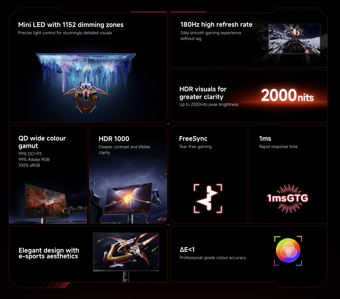 O mais recente monitor para jogos Mini LED de 2.000 nits da Xiaomi agora é vendido internacionalmente