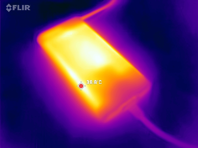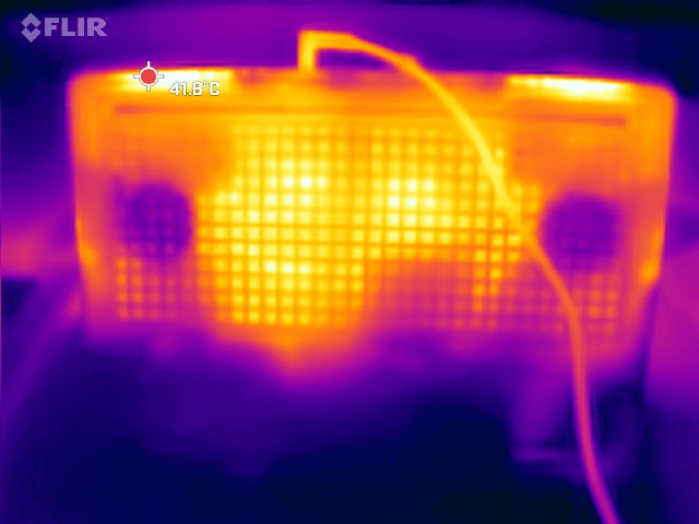 (+) Em uso inativo, a temperatura média para o lado superior é 27.7 °C / 82 F, em comparação com a média do dispositivo de 33.9 °C / ### class_avg_f### F.