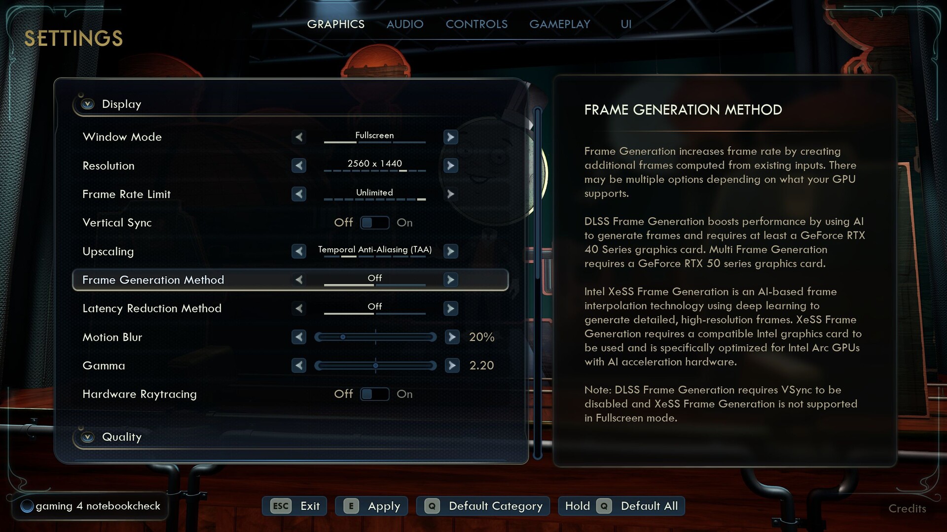 O menu de gráficos na versão para PC é impressionantemente extenso, o que encantará tanto os ajustadores de desempenho quanto os entusiastas visuais. O Outer Worlds 2 vem repleto de recursos modernos, incluindo opções de upscaling, como TSR, XeSS, FSR e DLSS, com suporte para Multi-Frame Generation em GPUs compatíveis. O ray tracing baseado em hardware também está disponível como um recurso opcional. Várias predefinições permitem que os jogadores ajustem facilmente todas as configurações na seção "Gráficos", e as alterações entram em vigor instantaneamente sem a necessidade de reiniciar o jogo.