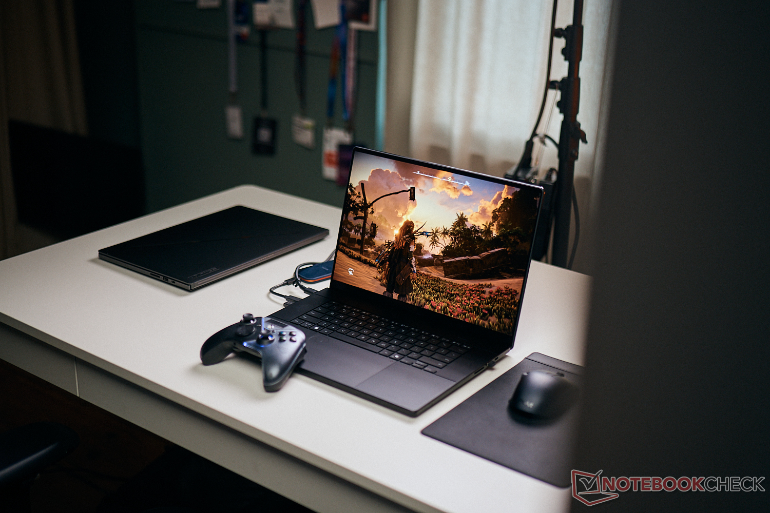Assim como o gamer ROG Zephyrus G16, o chassi do novo P16 é um pouco mais grosso para dar espaço à unidade de resfriamento da câmara de vapor aprimorada. As GPUs móveis de ponta (RTX 5070 Ti, RTX 5080 ou RTX 5090) funcionam com um TGP máximo de 120 Watts e, no geral, o desempenho dos dois irmãos é basicamente idêntico. Isso também inclui o desempenho em jogos, embora o P16 não ofereça suporte à alternância de GPU Advanced Optimus. Em comparação com os modelos anteriores do P16, o senhor também se beneficia de mais VRAM (12-24 GB, dependendo da GPU) ao editar fotos ou vídeos. O senhor também tem até 64 GB de RAM, mas infelizmente ela é soldada e não pode ser atualizada.