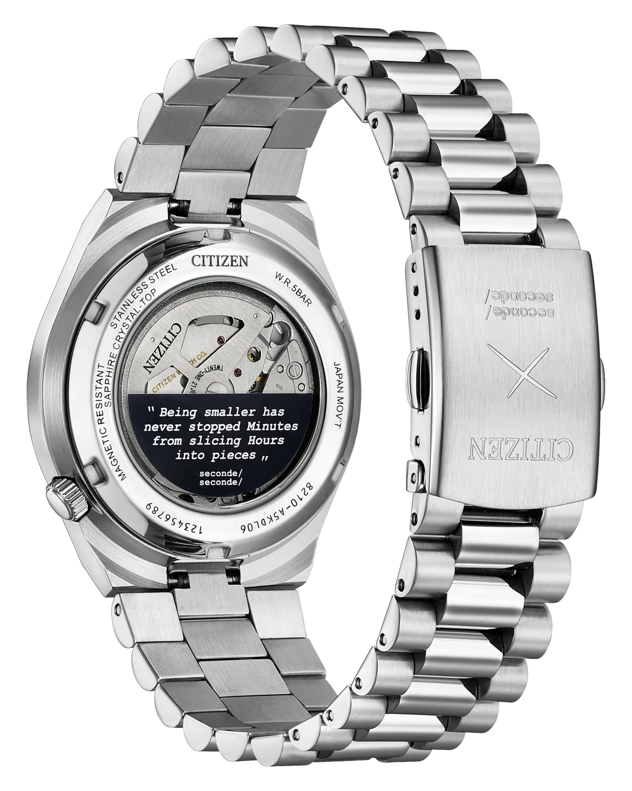O Citizen Tsuyosa x seconde/seconde (NJ0157-81L) é enviado em uma embalagem personalizada desenhada pelo artista Romaric André, com marcas de corte deixadas por uma katana. Limitado a 3.600 unidades em todo o mundo, o relógio estará disponível em varejistas Citizen selecionados e nas lojas on-line da empresa em USjapão, Europaásia e Oceania por US$ 495 / ¥73.700 / € 449.