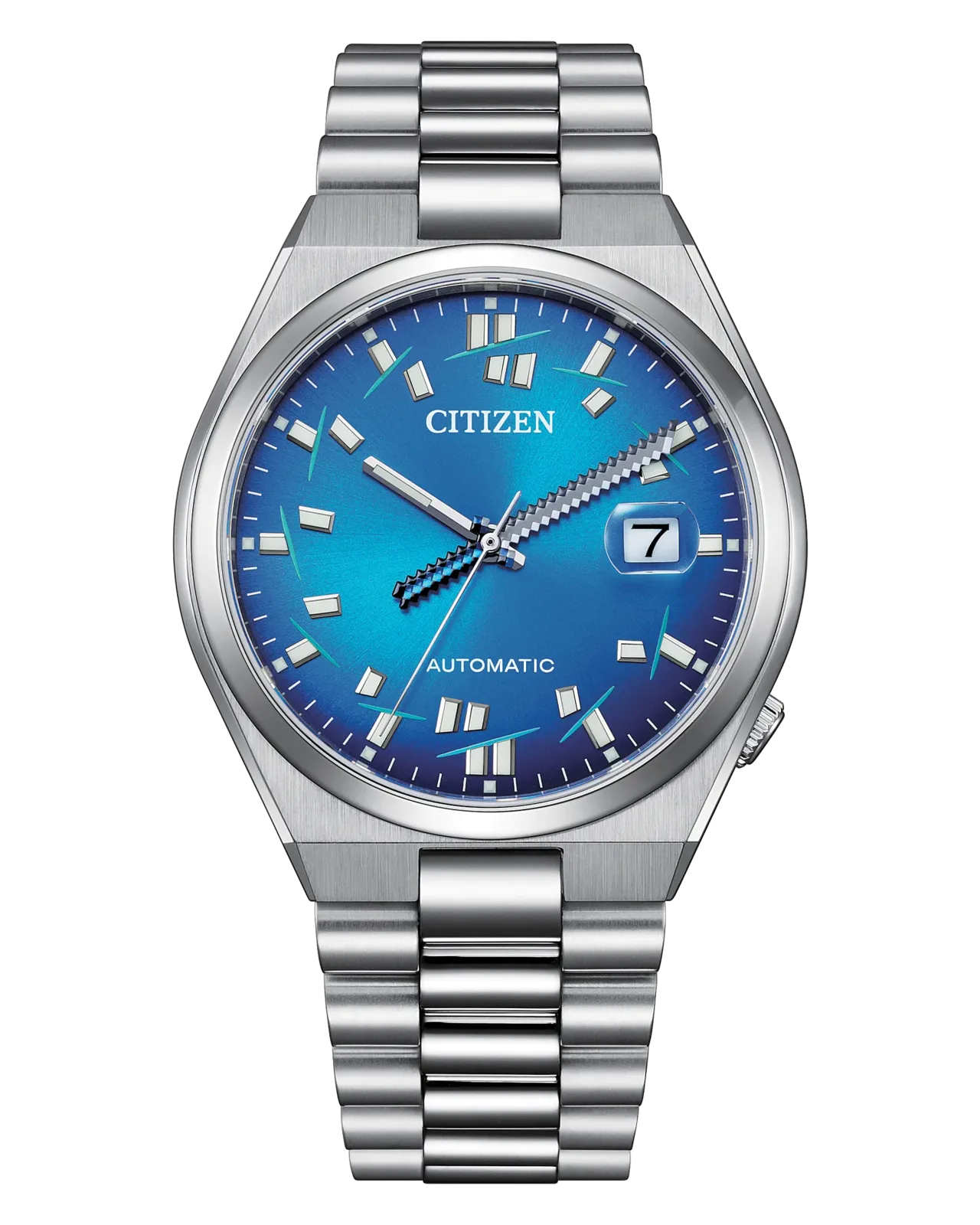 O novo relógio Citizen Tsuyosa x seconde/seconde/ edição limitada apresenta um ponteiro de minutos de katana, mostrador azul com efeito sunray e o Calibre automático 8210