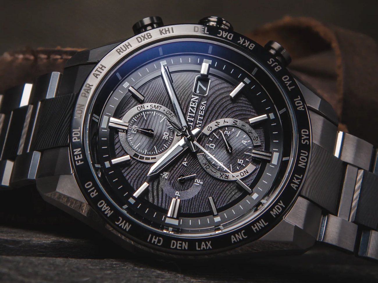 Na parte interna, o relógio traz o movimento H800 Eco-Drive, que extrai energia de qualquer fonte de luz ambiente para manter a bateria interna carregada. Como faz parte da série Attesa, ele também oferece recursos de cronometragem atômica multibanda, o que significa que o relógio pode sincronizar-se automaticamente com torres de rádio para ajustar a hora em 26 fusos horários, proporcionando maior precisão.