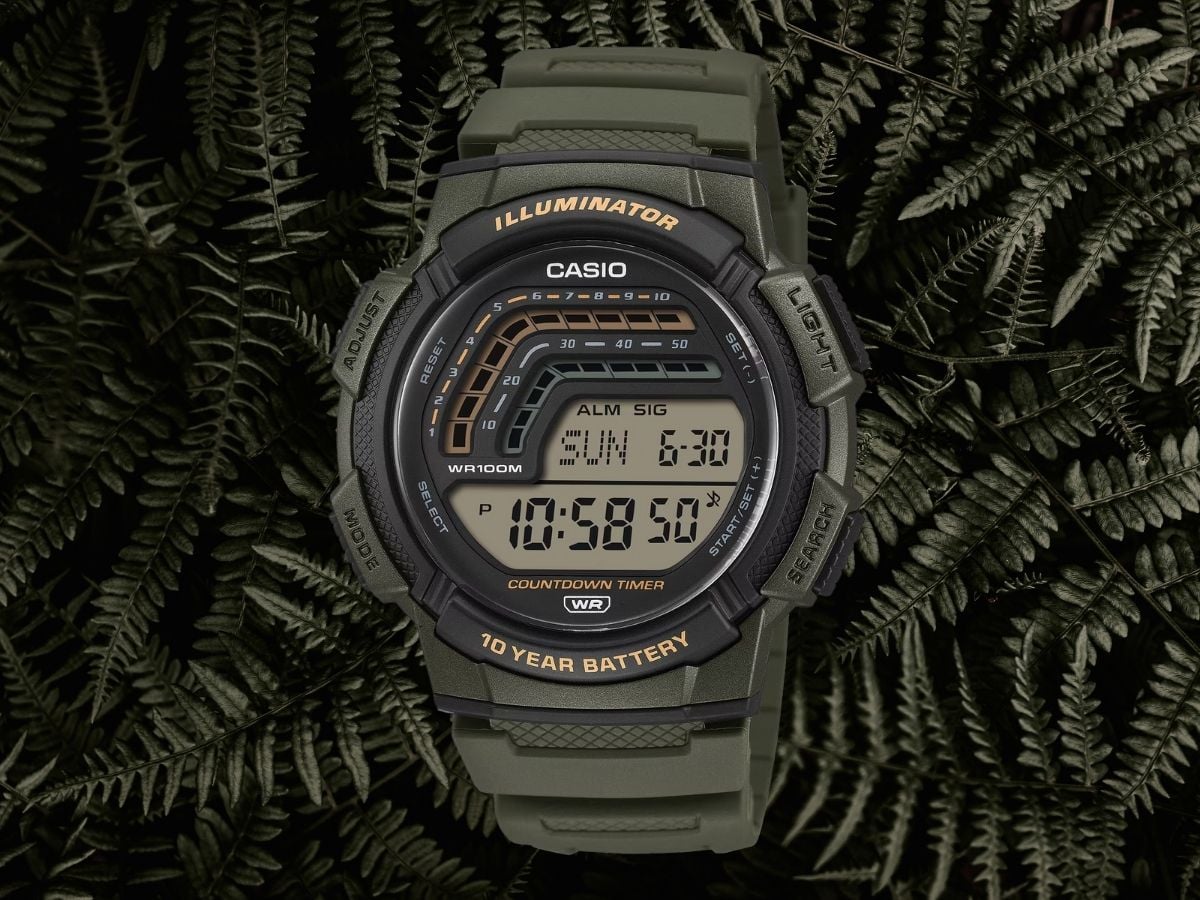 O Casio WS-1800 é um relógio digital com mostrador padrão (fundo claro, números escuros). A seção superior do mostrador tem dois segmentos gráficos que mostram o cronômetro de contagem regressiva atual. Outras ferramentas incluem um cronômetro, um alarme diário e sinais de hora em hora. A tela inferior, maior, mostra a hora em um formato de 12 ou 24 horas, a data e o dia da semana. De acordo com a empresa, o relógio deve manter a precisão de 30 segundos por mês, e o calendário é totalmente automático até o ano de 2099. Ele suporta 29 fusos horários mundiais e uma luz de fundo de LED ajuda o senhor a ler o relógio em condições de pouca luz.
