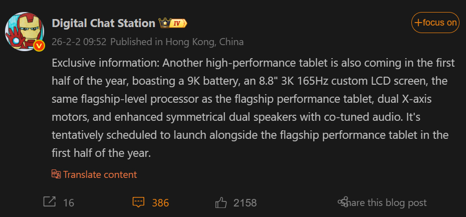 O Digital Chat Station, um informante confiável do Weibo, compartilhou um relatório sobre um tablet para jogos de alto desempenho que deve ser lançado no primeiro semestre de 2026. Segundo informações, ele será um rival da próxima guia Legion de 2026, que a Lenovo lançou recentemente.