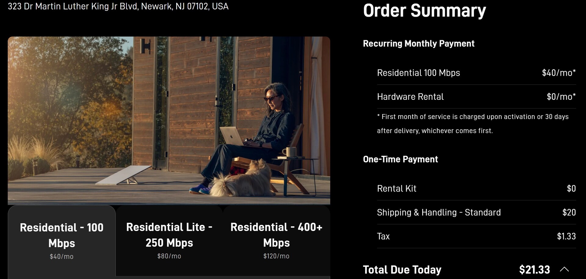 Os preços do novo plano Residencial começam a partir de apenas US$ 40 por mês para oferecer velocidades de até 100 Mbps, que a Starlink considera adequadas para duas ou três pessoas em uma residência que fazem uma quantidade normal de navegação ou streaming de vídeo em resolução de até HD. O plano também inclui dados ilimitados e velocidades de upload.