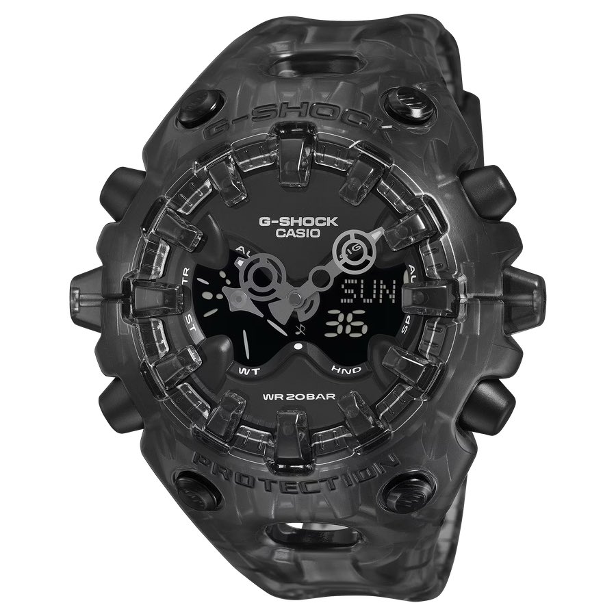 A Casio renovou seu modelo GA-V01 com quatro novos modelos transparentes. O novo Transparent Pack mantém o estilo futurista e inspirado em alienígenas do relógio, mas substitui as caixas sólidas por conchas transparentes no estilo esqueleto, além de introduzir uma nova cor laranja.