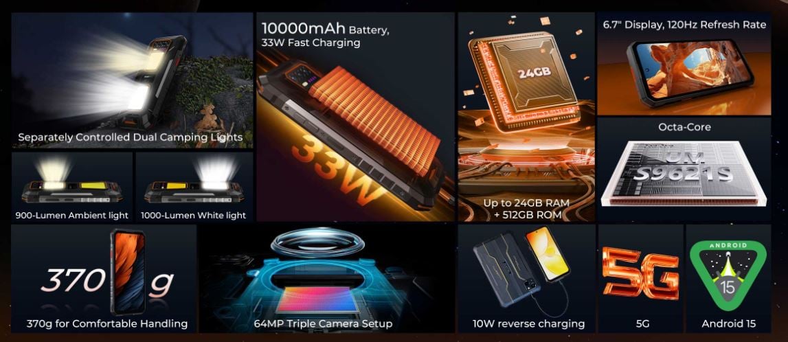 De qualquer forma, o smartphone da Oukitel é equipado com uma bateria de 10.000 mAh que pode ser carregada com até 33 watts. Ele também suporta carregamento reverso de 10 W, portanto, pode ser usado como um banco de energia. Além disso, o WP58 Pro é alimentado por um SoC com oito núcleos e suporte a 5G, portanto, não está limitado a 4G LTE como alguns outros smartphones robustos baratos. As especificações restantes incluem 8 GB de RAM, enquanto o armazenamento em massa de 512 GB também tem um tamanho razoável. O telefone é executado no Android 15 imediatamente e os usuários podem expandir o armazenamento via microSD, sacrificando um dos slots de cartão SIM duplo.