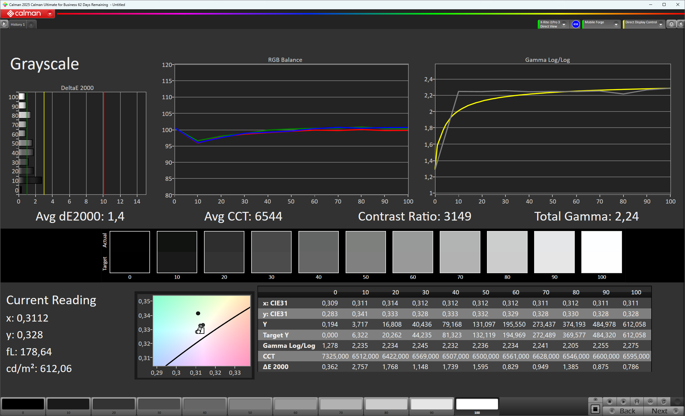 ΔE Greyscale Calman: 1.4 | ∀{0.09-98 Ø5}