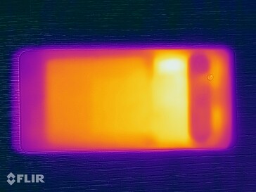 (±) A temperatura máxima no lado superior é 43.8 °C / 111 F, em comparação com a média de 35.2 °C / 95 F , variando de 21.9 a 247 °C para a classe Smartphone.