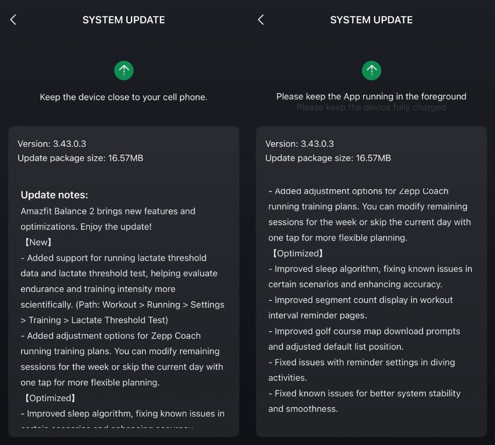 Agora, conforme relatado por usuários no Reddito Amazfit Balance 2 está recebendo a versão de firmware 3.43.0.3. De acordo com as notas de lançamento, esse smartwatch ganhou dois novos recursos para corredores. O primeiro é o suporte à coleta de dados de limiar de lactato e um teste de limiar de lactato. Essa métrica pode ajudar o usuário a entender a intensidade de seu treinamento e seu nível de resistência. O segundo é a capacidade de ajustar os planos de treinamento de corrida inteligentes do Zepp Coach. Os usuários agora podem alterar suas sessões semanais ou pular um dia, conforme necessário.