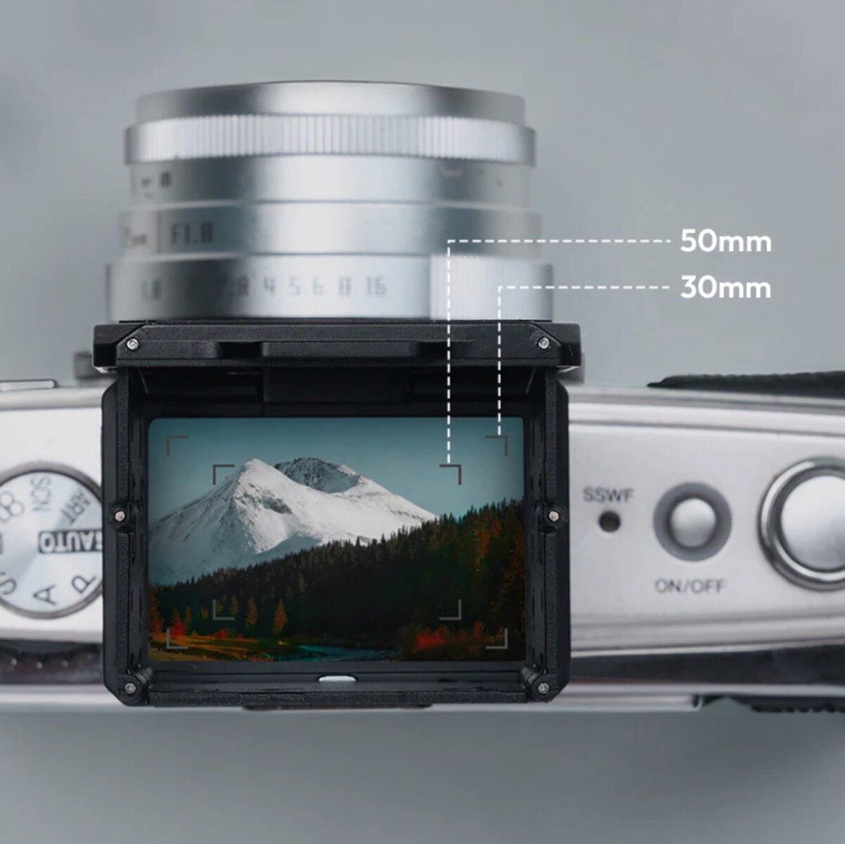 O Ulanzi VF-01 é um visor óptico que se conecta à sapata da câmera, permitindo que o usuário olhe para a câmera para compor sua foto. Um espelho e três lentes exibem o campo de visão de uma lente de 28 mm, mas as linhas de quadro também permitem que o senhor veja o campo de visão de uma lente de 35 mm ou 50 mm.