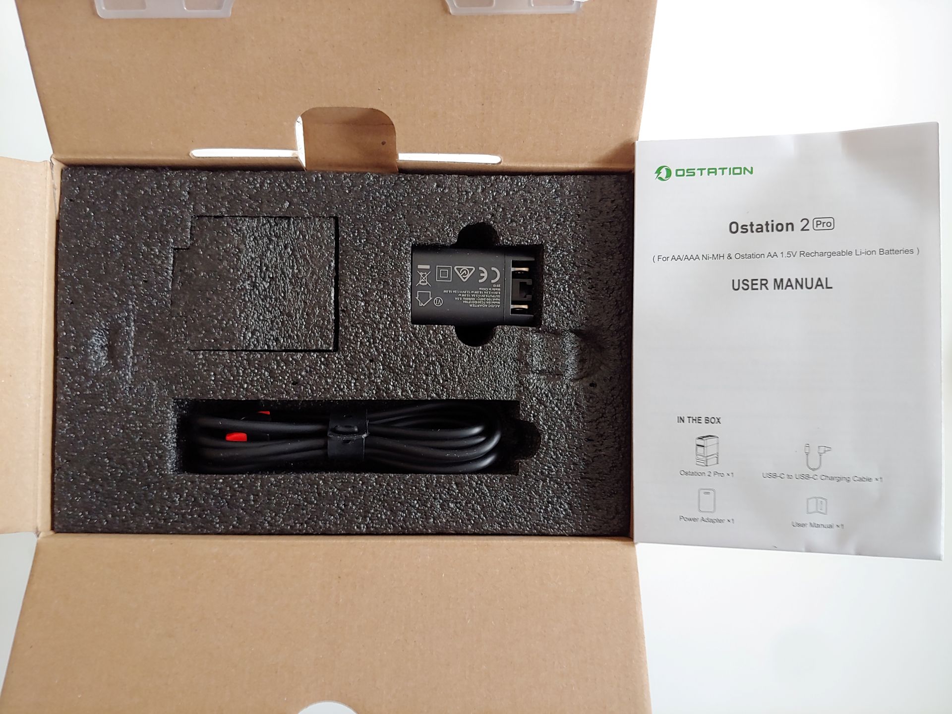 O carregador de bateria vem com um carregador e cabo USB-C de 18 W e um guia de início rápido. As baterias foram fornecidas para a análise.