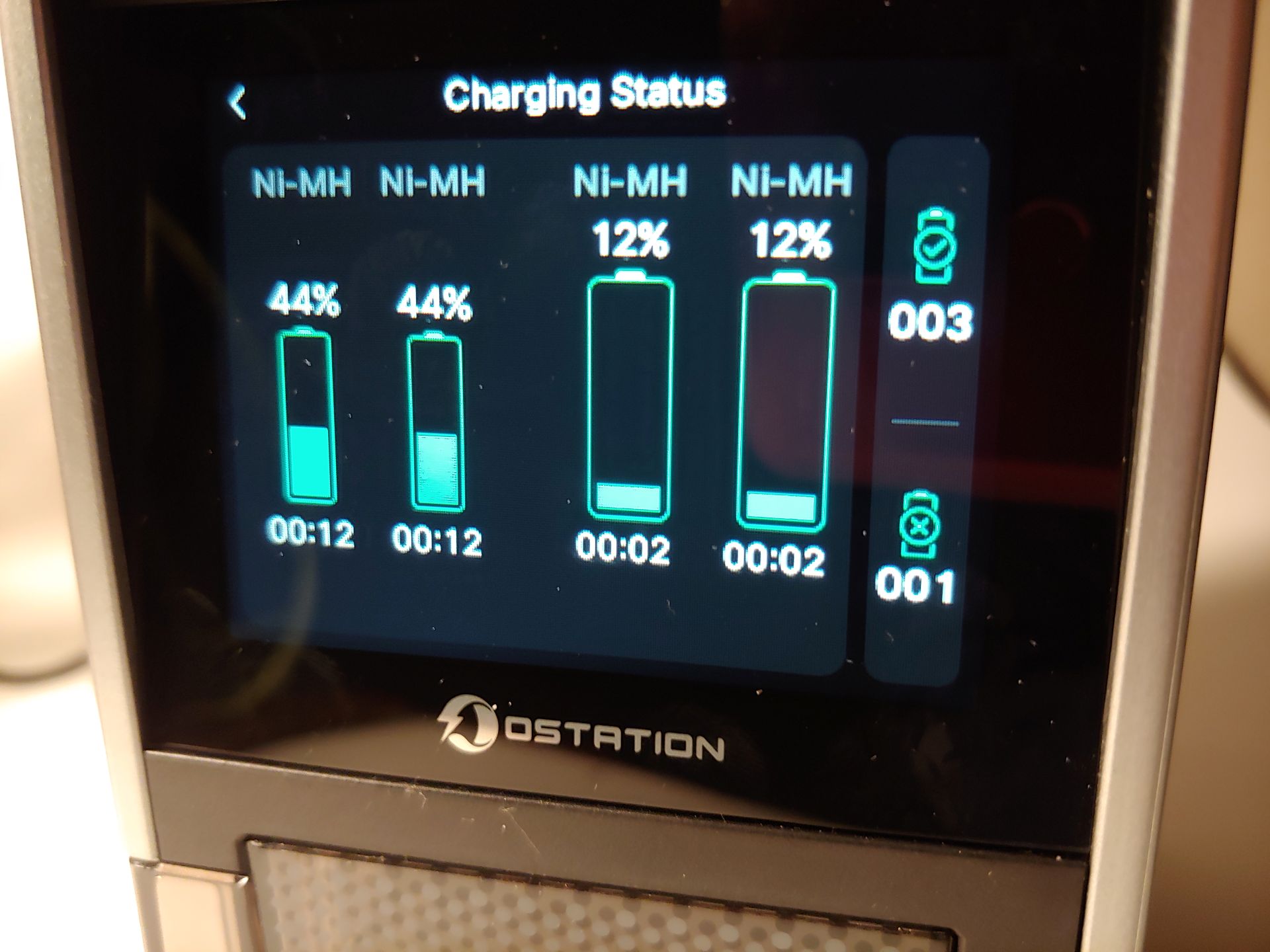 O Ostation 2 Pro carregou duas baterias AA Ni-MH de 2.200 mAh de 1% a 99% em cerca de 40 a 48 minutos, sendo que de 99% a 100% levou mais 21 minutos durante o teste. Duas baterias AAA Ni-MH de 950 mAh carregaram de 1% a 99% em cerca de 50 minutos, e de 99% a 100% em mais 20 minutos. Como a unidade só carrega no máximo duas pilhas AA e duas pilhas AAA de uma vez, uma carga máxima de 12 pilhas AA e 12 pilhas AAA esgotadas levará mais de seis horas para carregar.